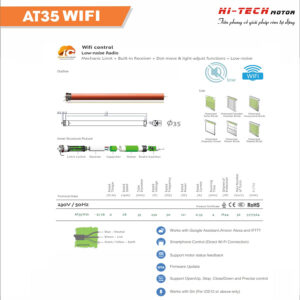 - Động Cơ AT35 Wifi là động cơ rèm cuốn hình ống, đường kính 35mm, dùng cho các bộ rèm cuốn kích thước từ nhỏ đến trung bình.