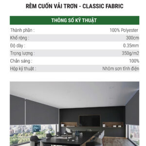 Thông số kỹ thuật vải rèm cuốn mã Classic